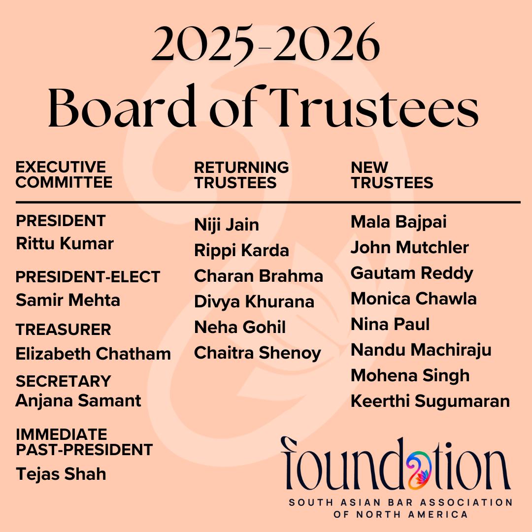 The South Asian Bar Association of North America Foundation supports access to justice for South Asian communities in North America.